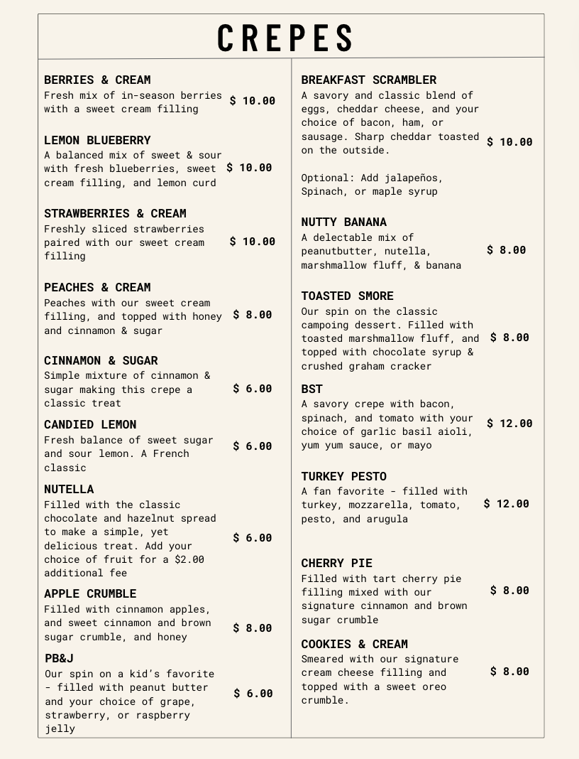 Simple mixture of cinnamon & sugar making this crepe a classic treat.